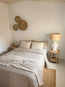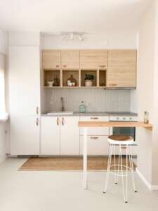The kitchen is open to the living room and is equipped with all the latest generation appliances as well as high quality finishes. The house has two very spacious bedrooms, both with large wardrobes. The bathroom counts with a very minimalist design with modern neutral colors that give feeling of warmth and relaxation.